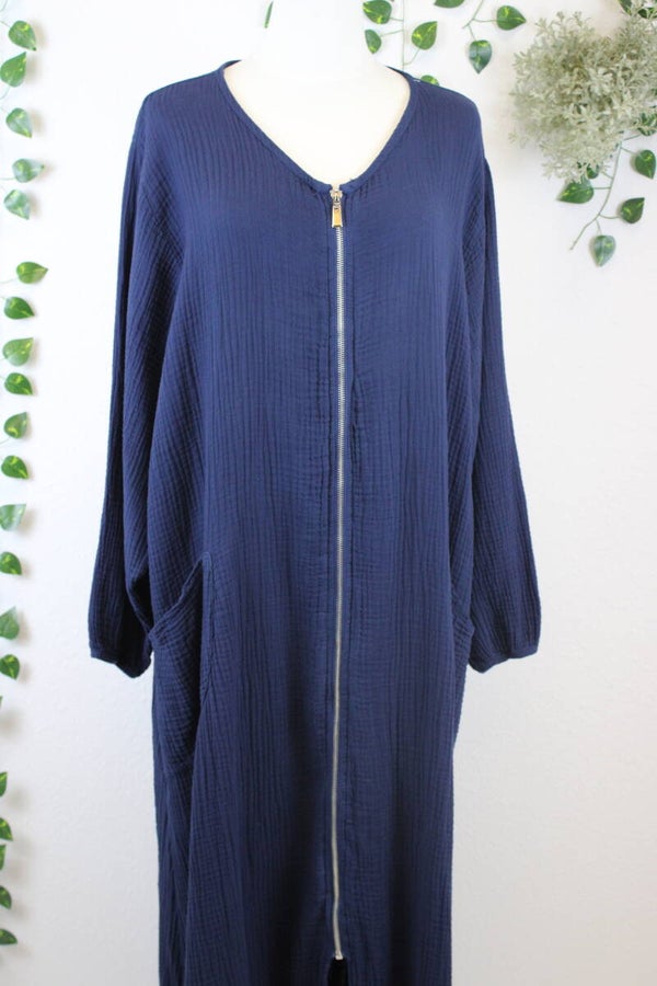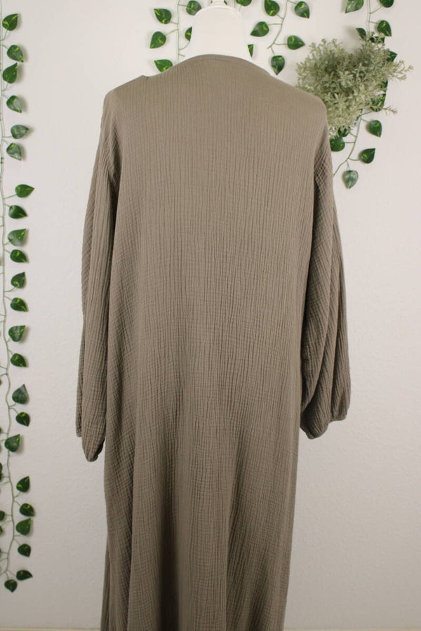 Die Serena Abaya kombiniert Funktionalität mit schlichter Eleganz. Hergestellt aus 100 % Baumwolle bietet sie höchsten Tragekomfort – atmungsaktiv, natürlich und angenehm auf der Haut. Der Reißverschluss vorn ermöglicht ein einfaches An- und Ausziehen, während praktische Seitentaschen den Look alltagstauglich machen.