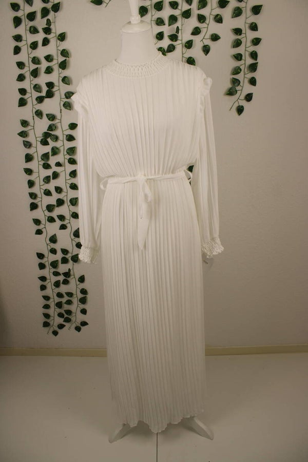 Das Helenaina Kleid vereint klassische Eleganz mit moderner Plissee-Struktur. Es besteht aus einem weich fallenden Unterkleid und einem darüberliegenden, leicht transparenten Überwurf mit Bindemöglichkeit. Die fließende Silhouette und der leichte Glanz machen es ideal für festliche Anlässe oder stilvolle Alltagslooks.